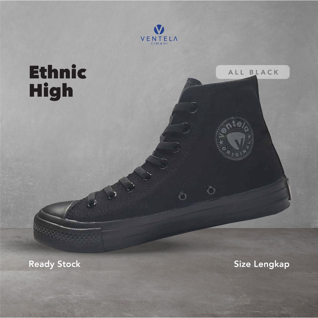 Ventela Ethnic High All Black Sneakers Lokal Original