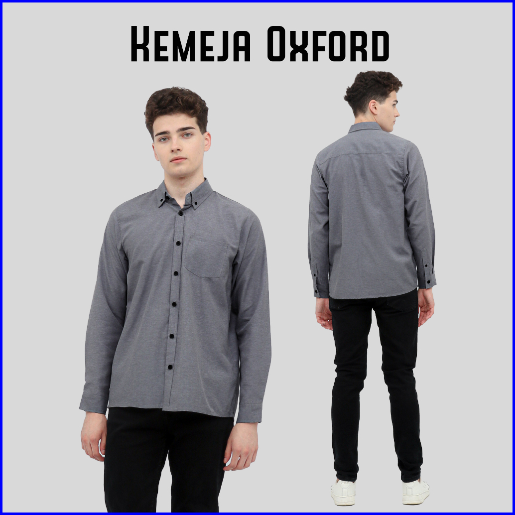 Vhatoga Kemeja Lengan Panjang Pria Oxford Hitam
