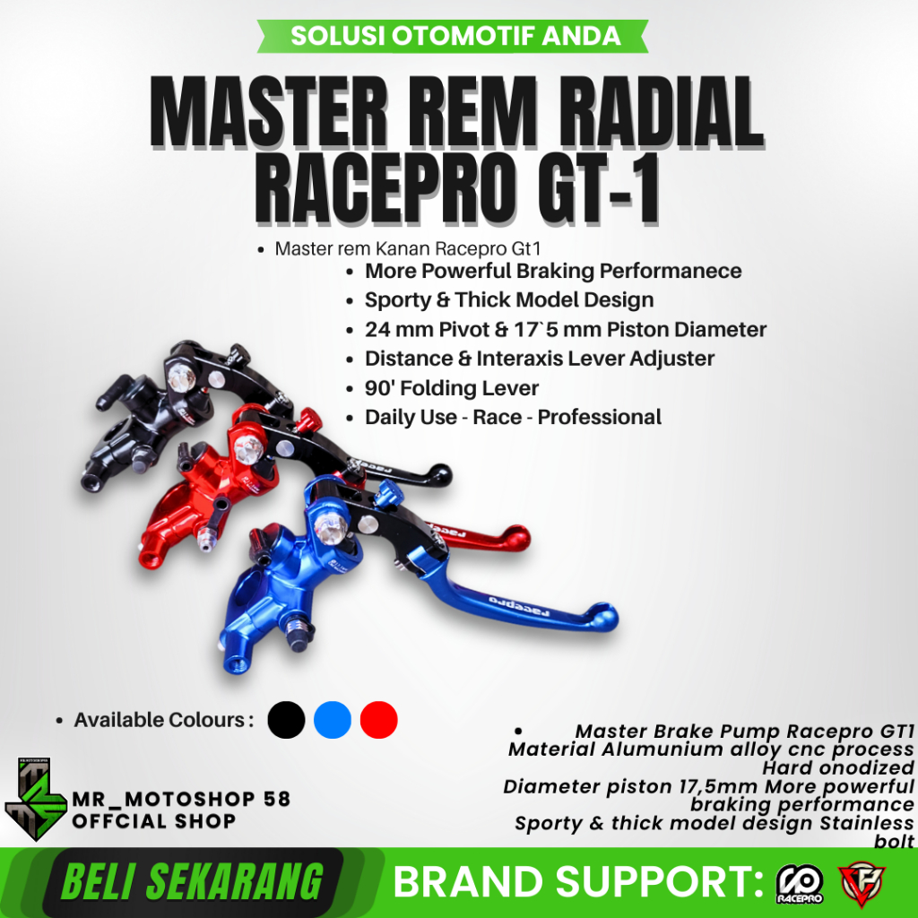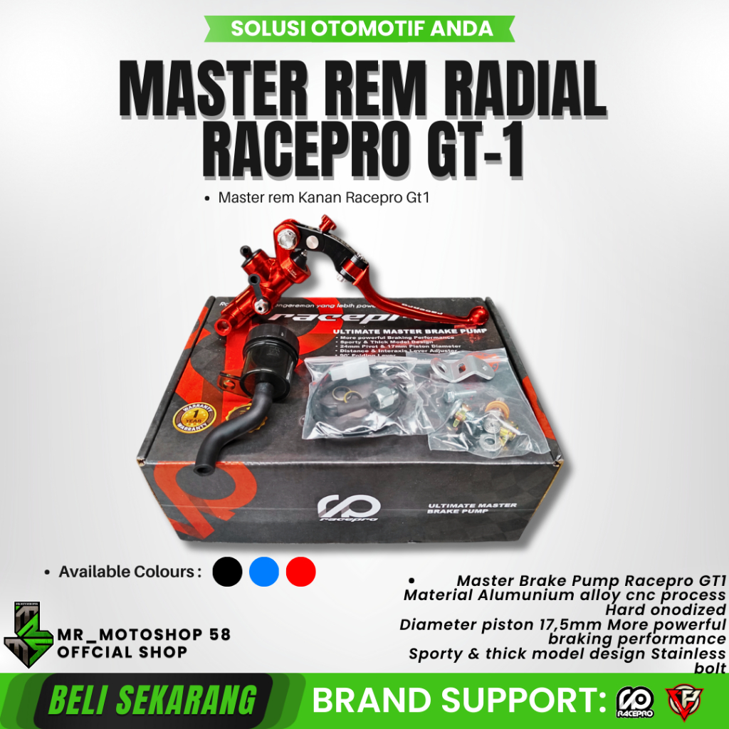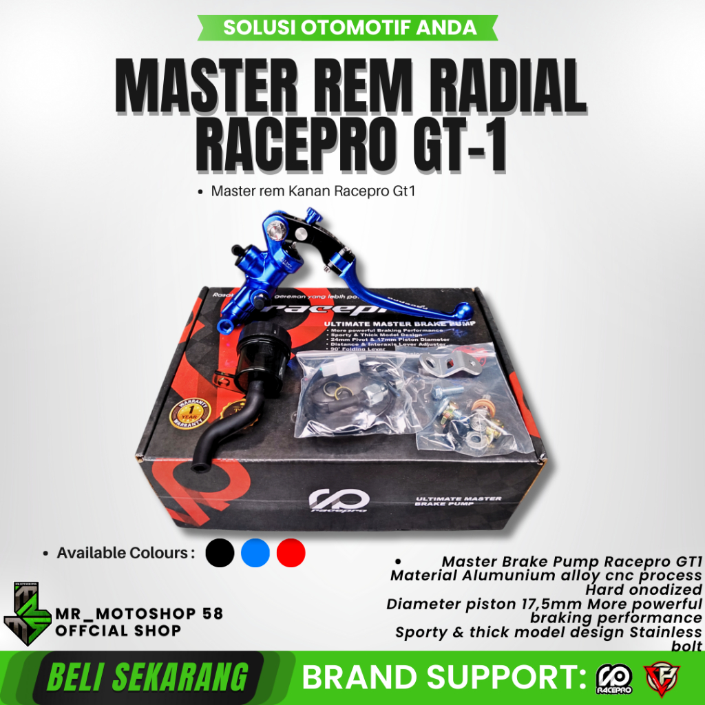 MASTER REM RACEPRO SINGLE RADIAL GT-1 17MM KOPLING KIRI RACE PRO GT1 ALUMINIUM T6 CNC BAUT STAINLESS