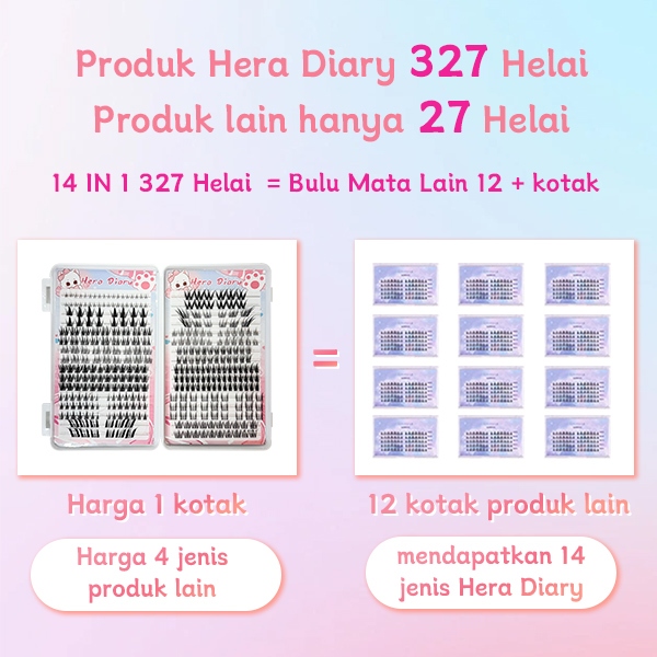 C01【FREE LEM】Hera Diary 14 in1BuluMata Palsu anime eyelash extension 32 Baris 327 Helai Bulumata palsu Douyin manga Natu