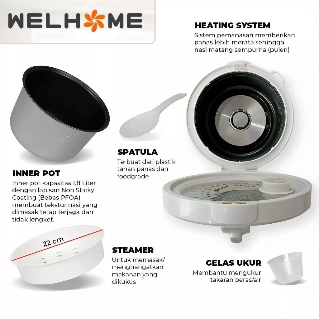 Rice cooker - magic com - mejikom - Rice Cooker Penanak Nasi 3 in 1 Stainless Body 1.8L WRC 3113 WELHOME