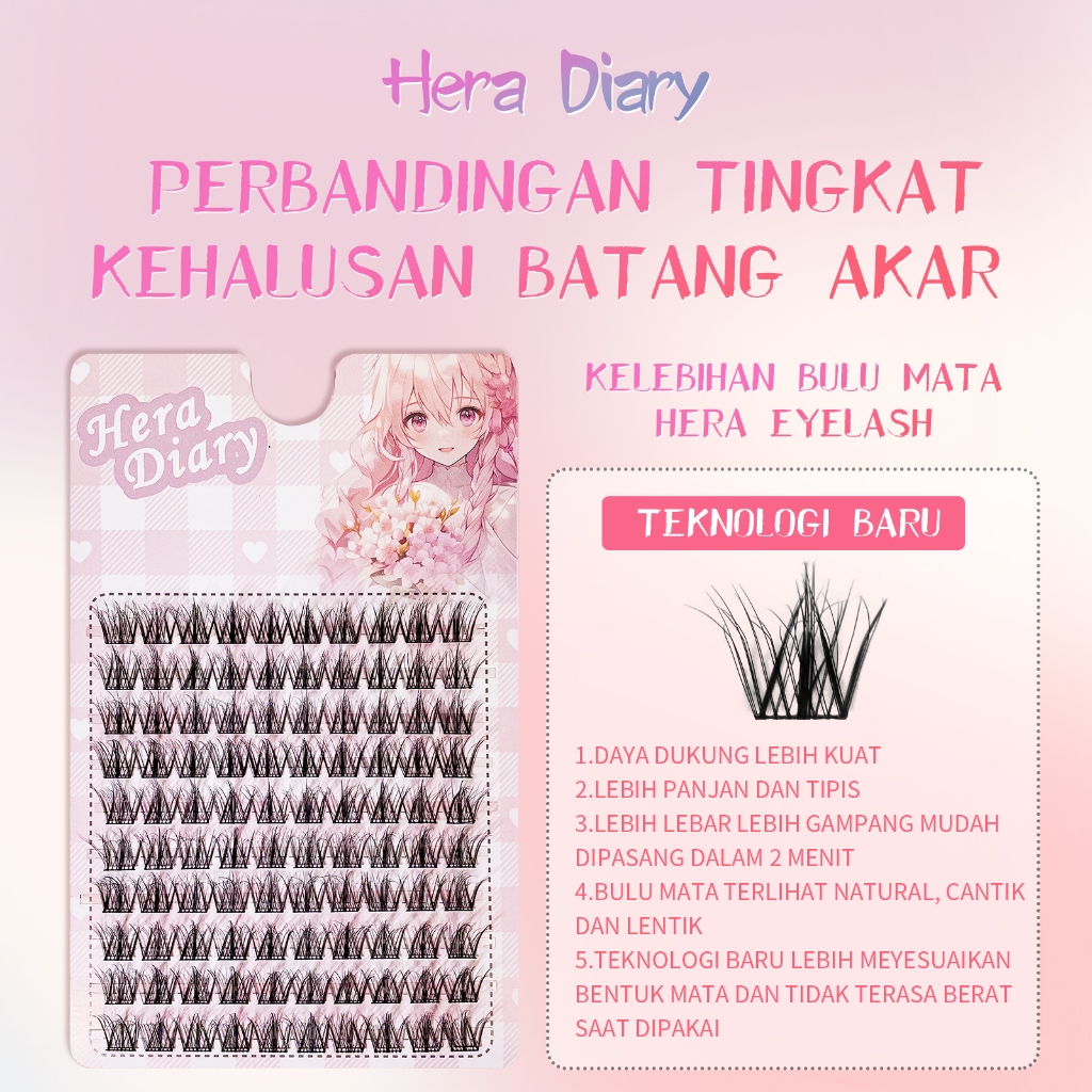 A14【FREE LEM】Hera Diary 5D BuluMata Palsu Anime Bulumata Natural Eyelash ekstensi Individual Douyin manga