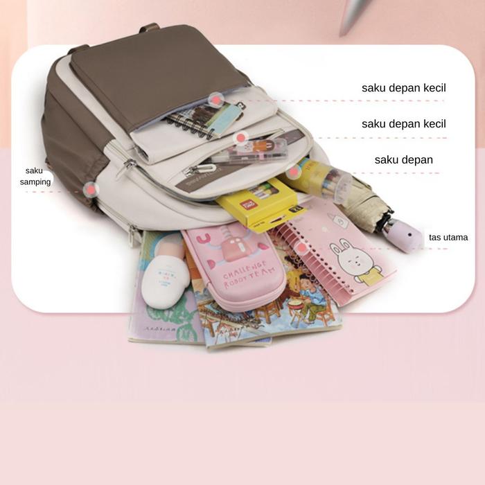 HINATA Tas Ransel Anak Sekolah SD/SMP/SMK Warna Soft Fashion Premium - M0265