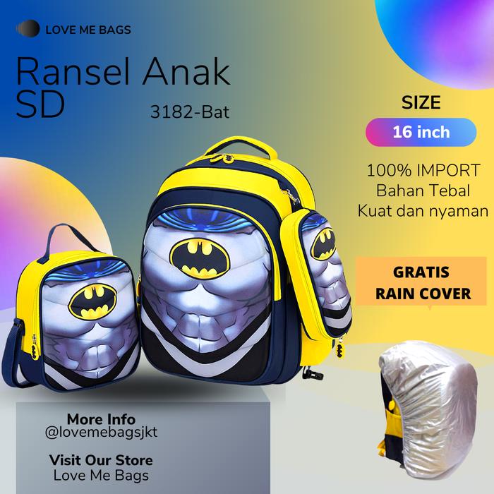 LMB Tas Anak Sekolah SD Laki Import 3in1 Karakter Superhero Bagian Depan Timbul 6D Bahan Nilon