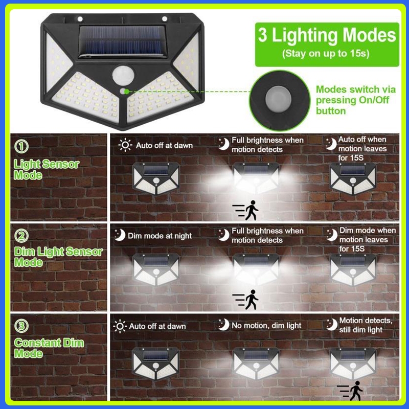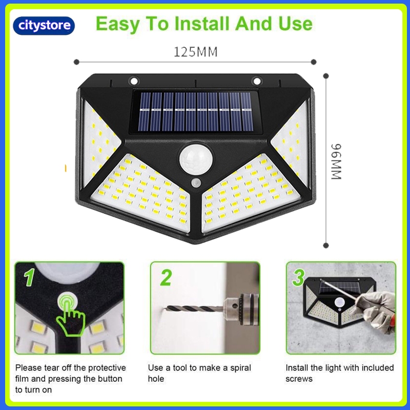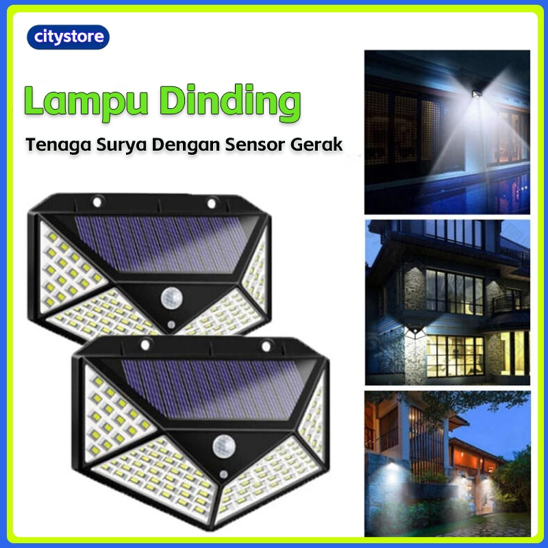 Citystore Lampu 100 LED Solar Tembok Dinding / Lampu Taman Outdoor Tenaga Sinar Matai / Lampu Solarcell Lampu Dinding em