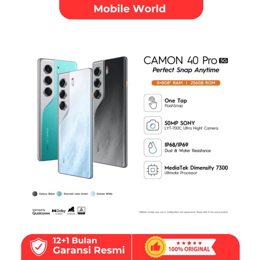 TECNO CAMON 40 PRO 5G RAM 8/256 Garansi Resmi Indonesia