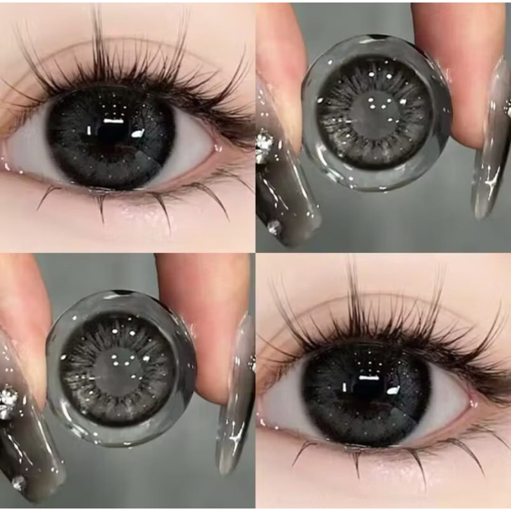 Kks01 Softlens Premium Hitam Mix Abu / Softlens BlackGrey 14.5mm Normal&Minus