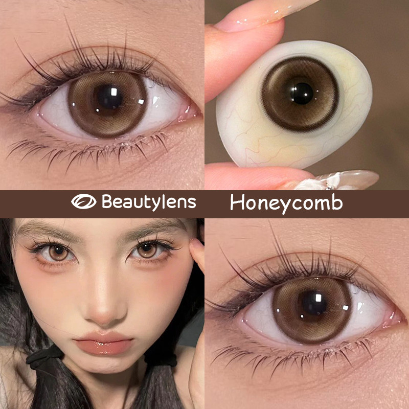 BEAUTYLENS Softlens minus[0.00 s/d -8.00]Lensa Yearly Gel Universal 14.2mm Honeycomb Milk Tea Coklat