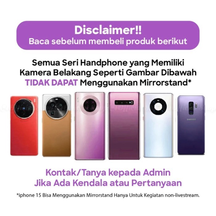 Lbagstore Stand Mirror HP Live Stream Kamera Camera Utama Belakang Phone Holder Tri Cermin Record Video dengan Pantul