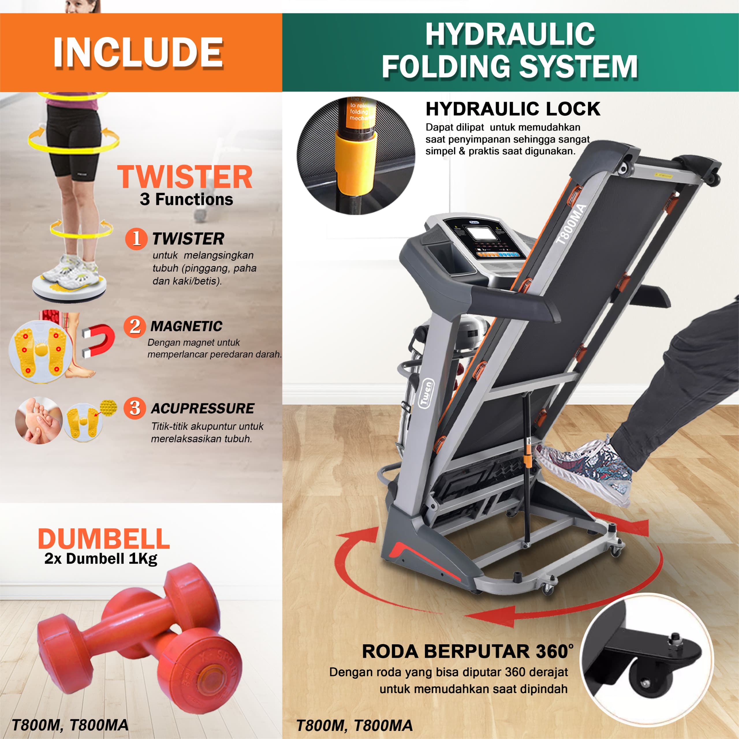 TWEN T800MA Treadmill Listrik Treadmill Portable Treadmill Multifungsi Treadmil Lipat Treadmill Electric Low Watt