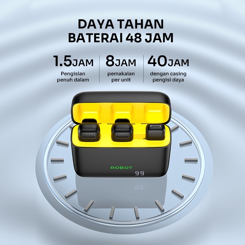 ROBOT Microphone Clip Wireless Lavalier with AI 20m for Audio/Video/Recording/Live/Broadcast/Gaming iOS Android Micropho