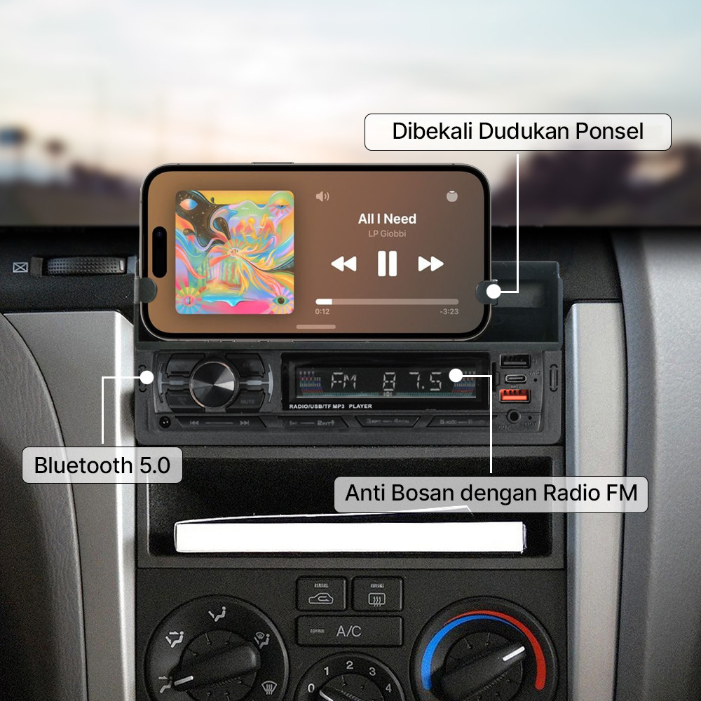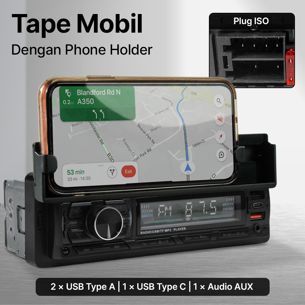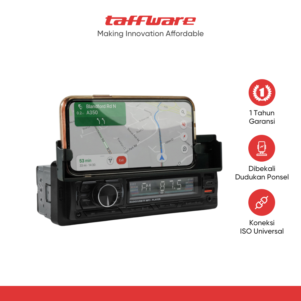 Taffware Tape Mobil Audio MP3 Player Bluetooth USB ISO Phone Holder - HL83