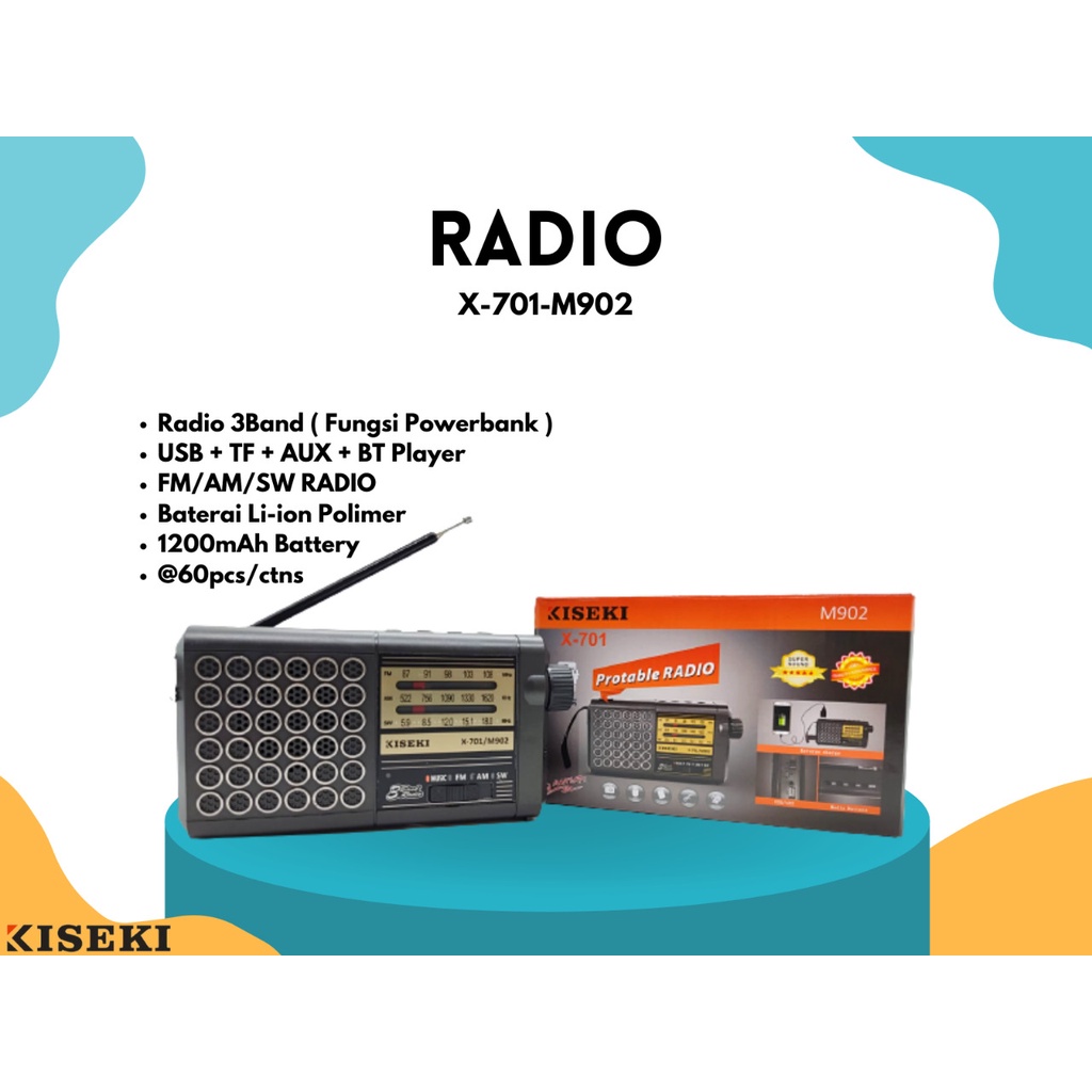 Kiseki X-701-M902 Portable Radio 3Band Fungsi Powerbank