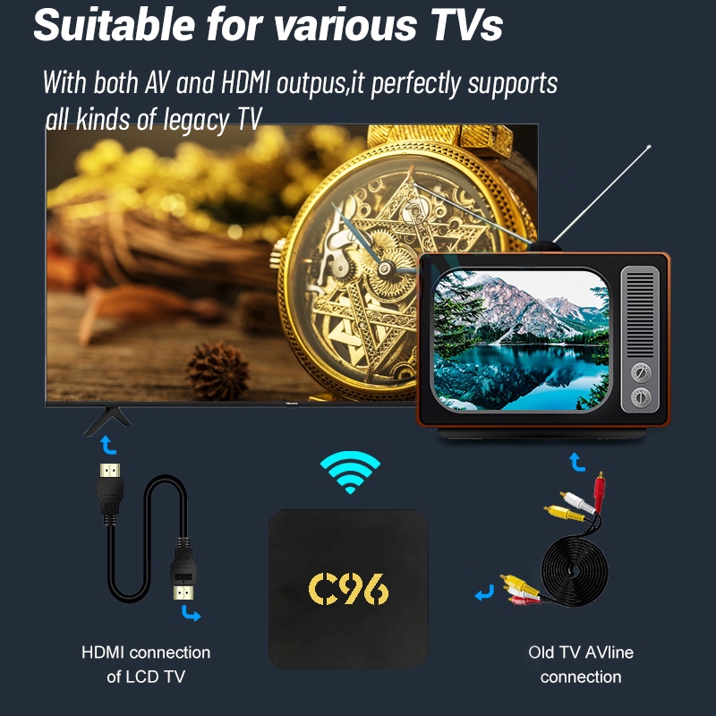 YGDS C96 Android Tv Box 4K HD Bluetooth Set Top Box 2.4GHz/5G WiFi STB Android Tv 16gb Ram 256gb Rom Unlock CHANNEL Tv B