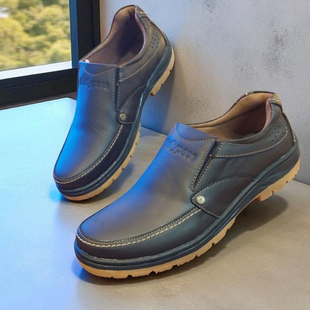 Sepatu Kulit Sapi Asli Pria Casual Slip on Dewasa Keren Terbaru