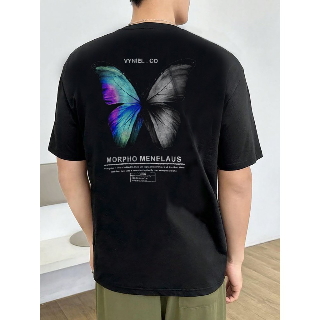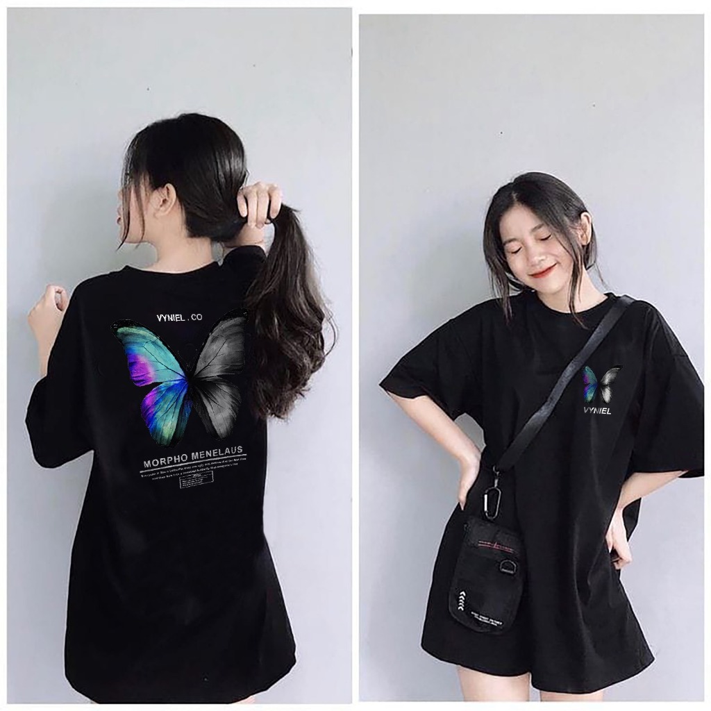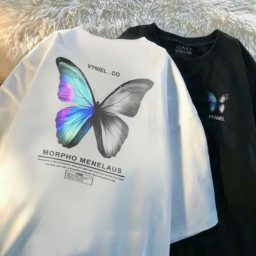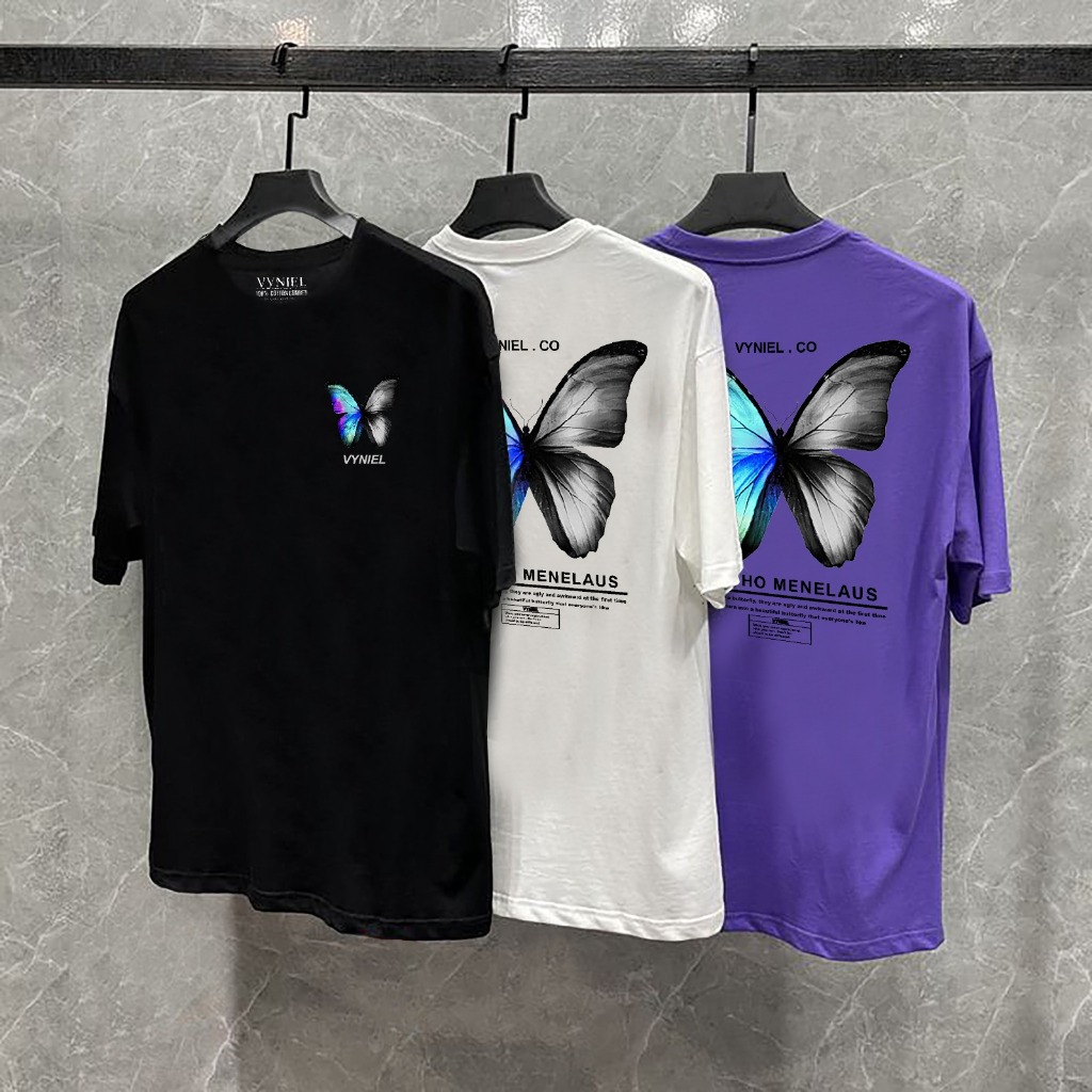 VYNIEL Kaos T Shirt Distro Cotton Combed 30s Oversize Butterfly pelangi Size S - XX Pria Wanita