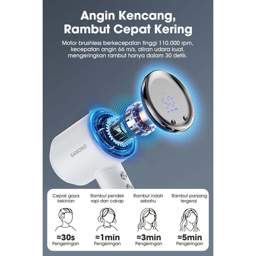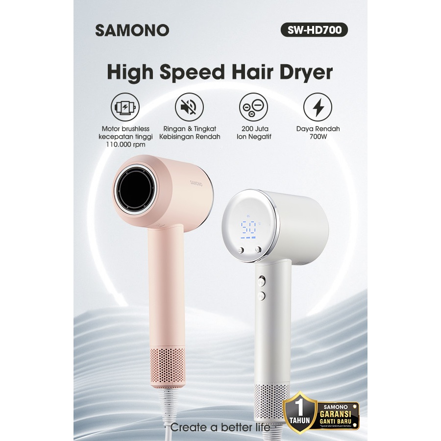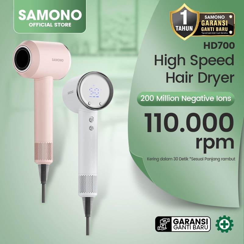 SAMONO High Speed Hair Dryer Ion Negatif Kecepatan Tinggi Low Watt HD700 Garansi 1 Tahun