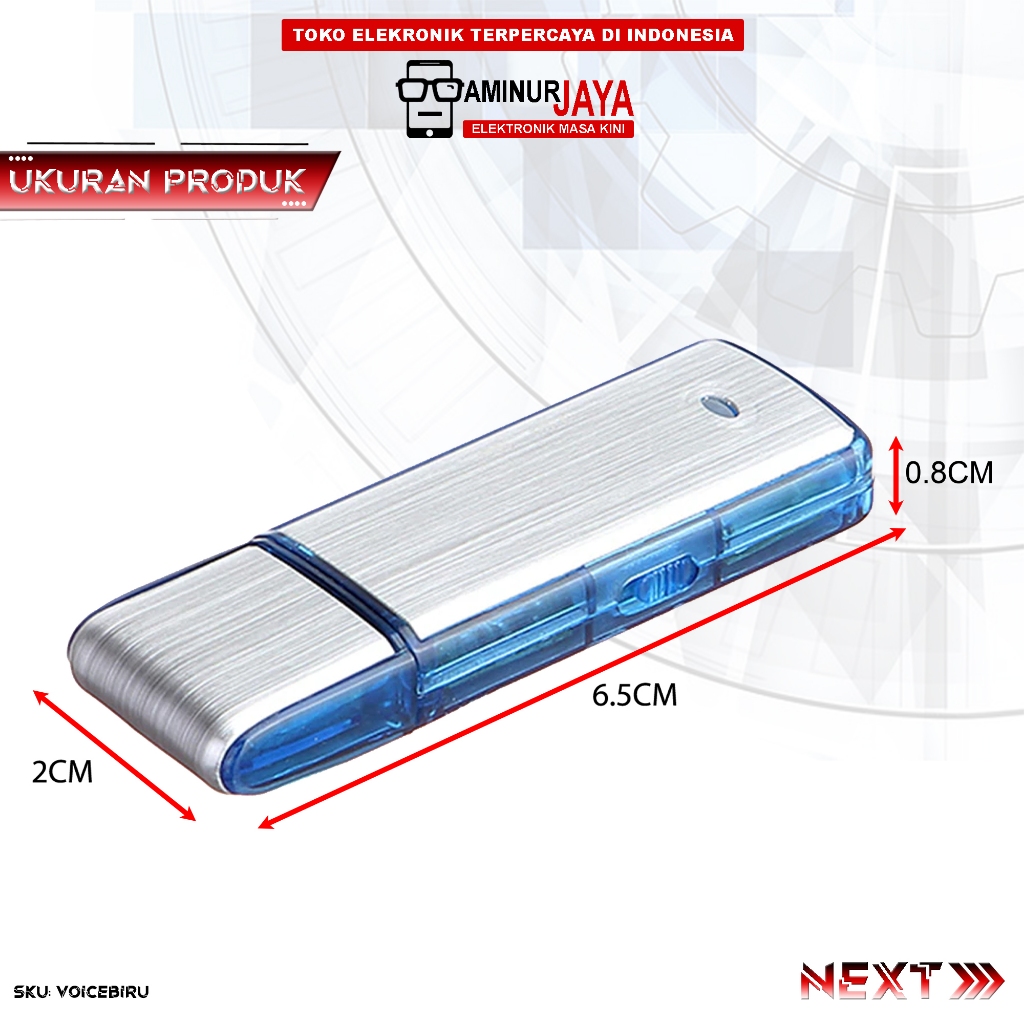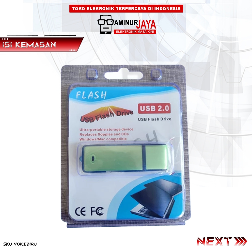 Aminurjaya USB Voice Recorder Spy 8GB Perekam Suara Tersembunyi Mini Bentuk Flashdisk VOICEBIRU