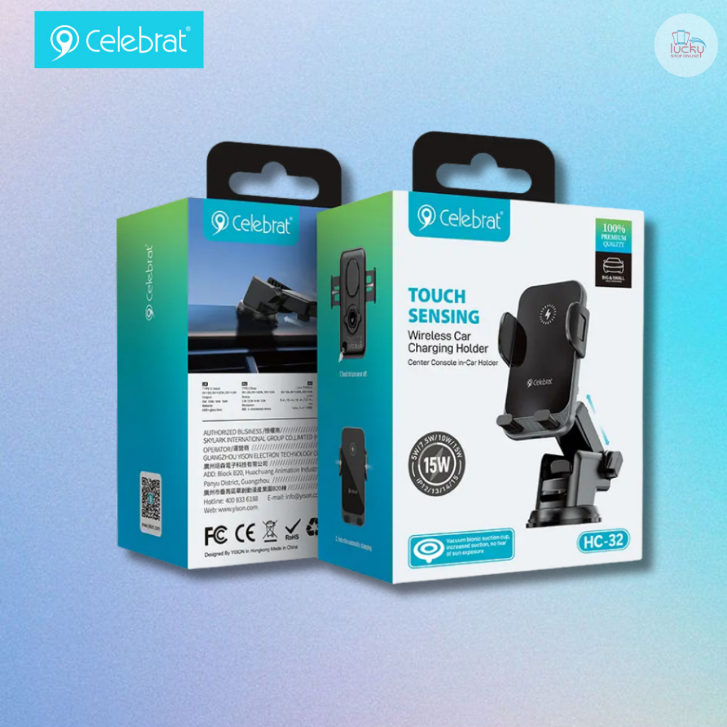 Celebrat HC-32 Wireless Car Charging Holder / Holder HP Mobil Wireless Charger 15W Touch Sensor