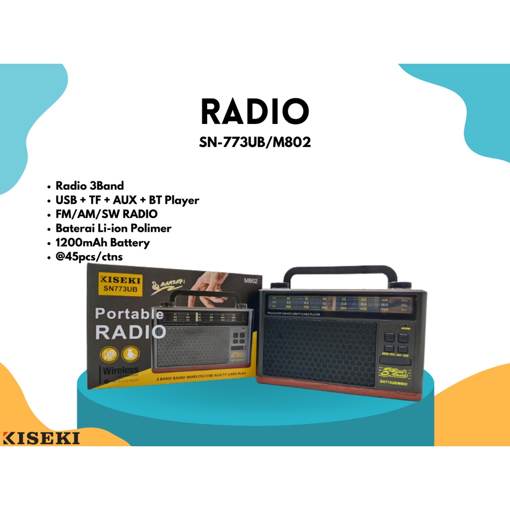 Kiseki Speaker Bluetooth SN-773UB/M802 Portable Radio 3Band