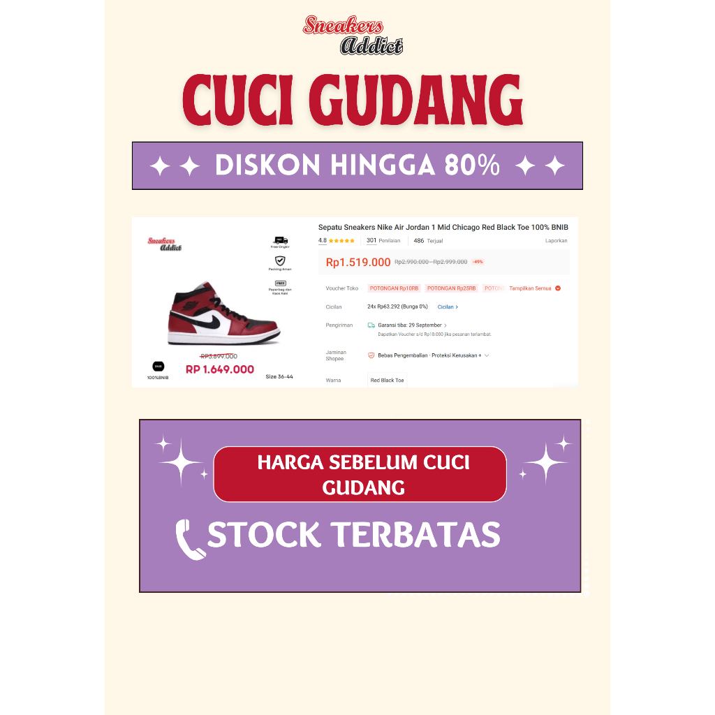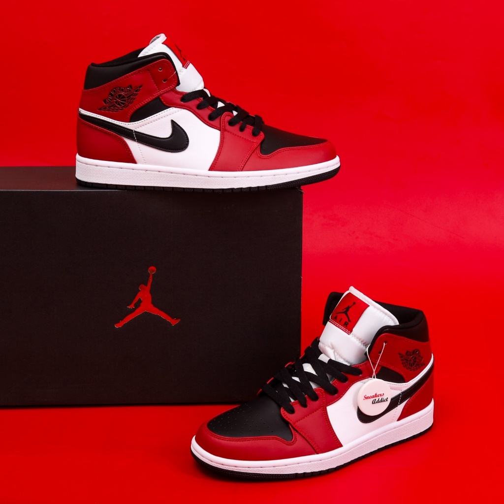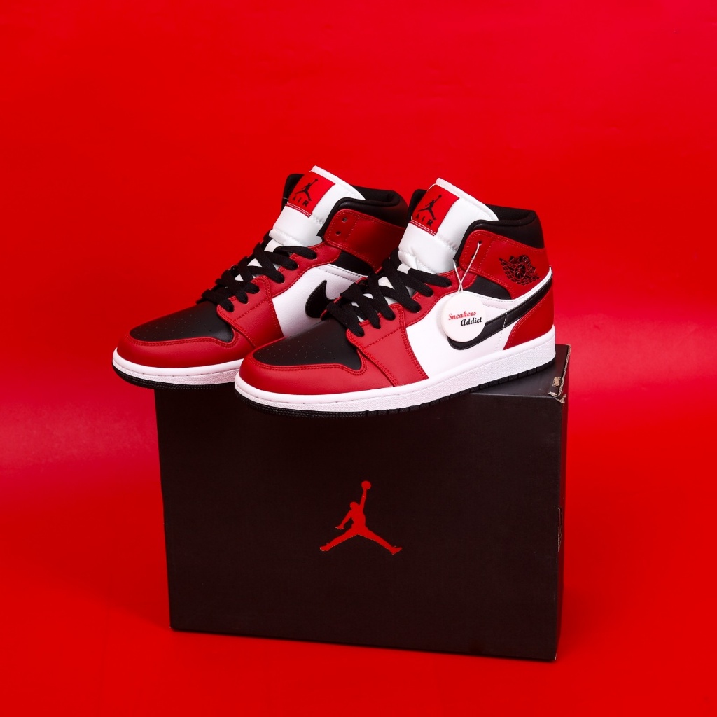 Sepatu Sneakers Nike Air Jordan 1 Mid Chicago Red Black Toe 100 PERSEN BNIB