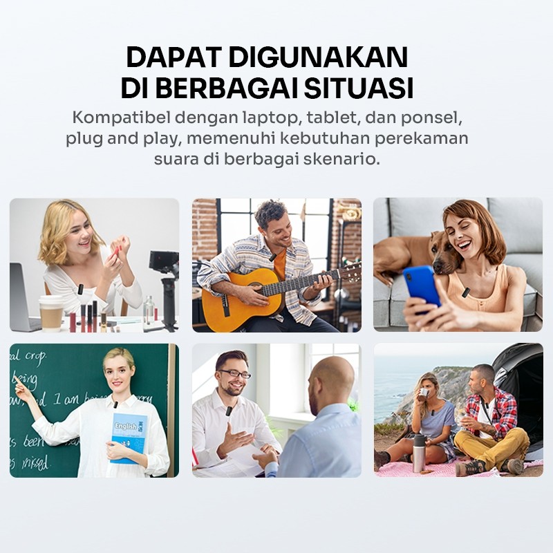 ROBOT Microphone Clip On Wireless Lavalier AI 20 Meter Mikrofon Portable untuk Konten Kreator Vlog YouTube HP Android iP