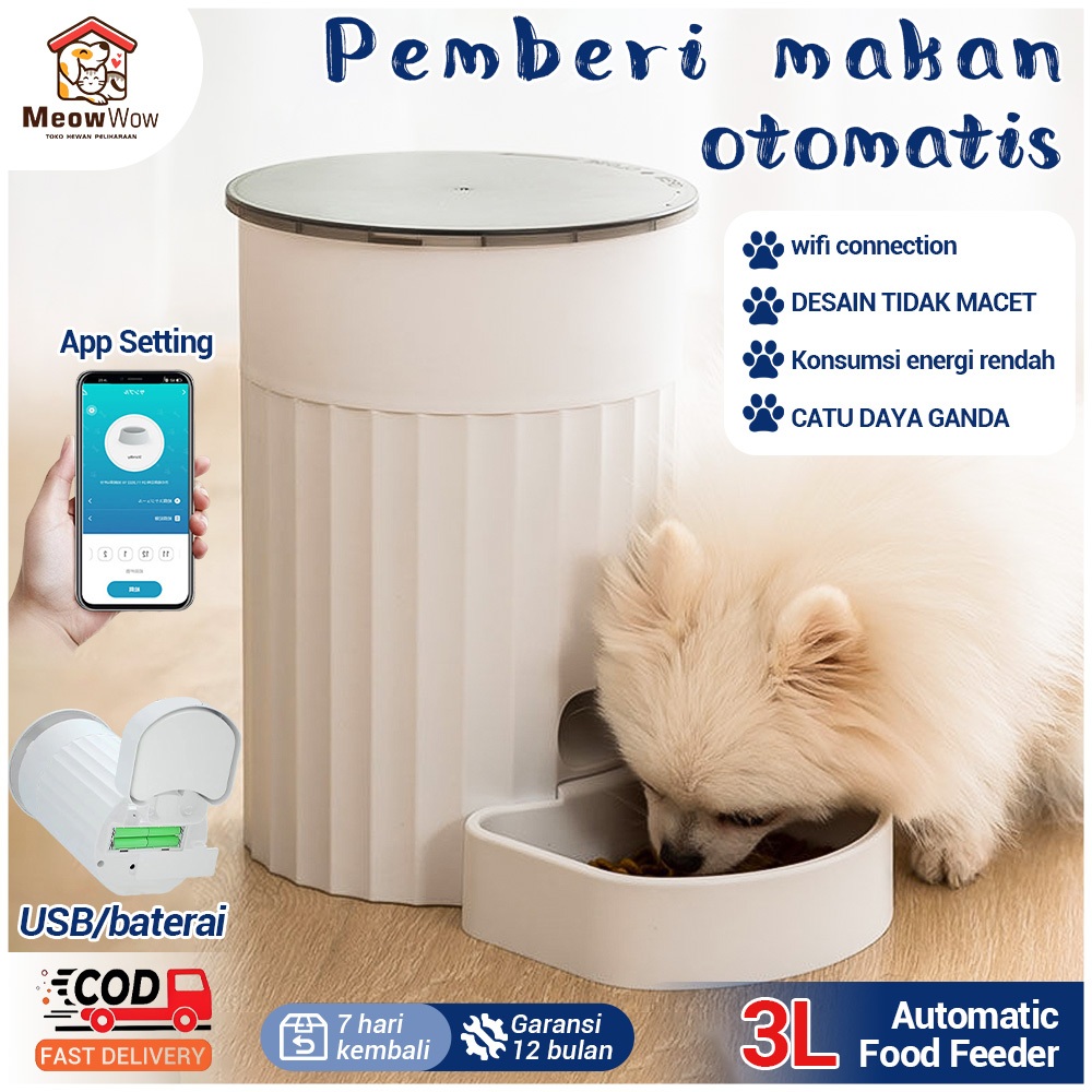 Meow Wow Automatic Pet Feeder APP WIFI Connect Kontrol Jarak Jauh Smart Pet Feeder 3 liter