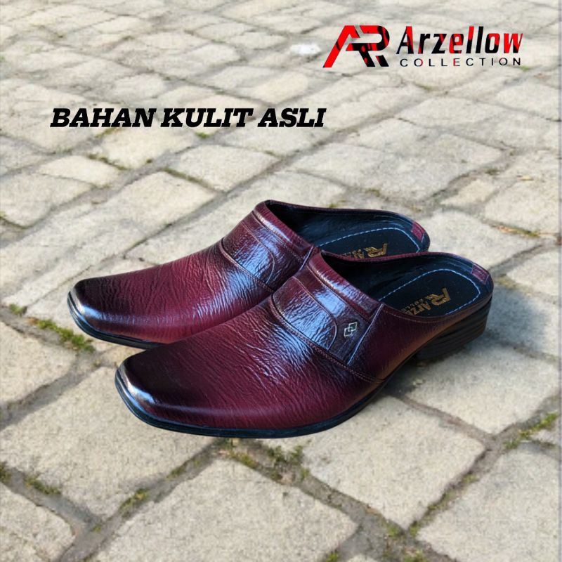 Sepatu Sandal Selop Bustong Pria Bahan Kulit Sapi Asli - Slip On Casual Pantofel Formal Laki-Laki Model Terbaru anti Sli