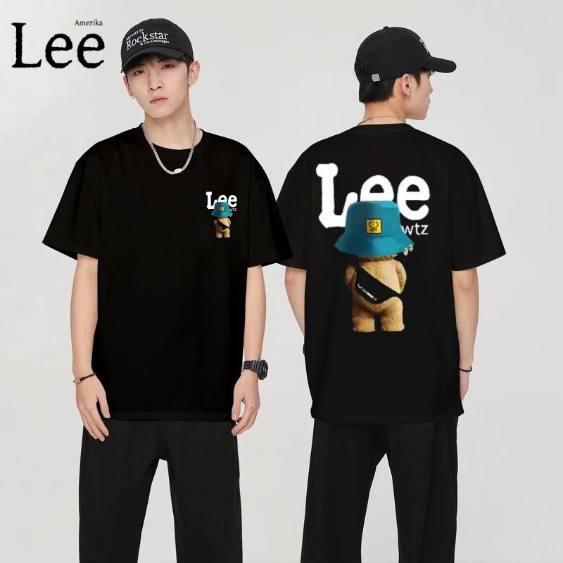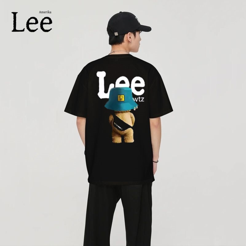 Kaos Lee x Teddy Bear Pria Lengan Pendek Hitam - Baju Distro Pria