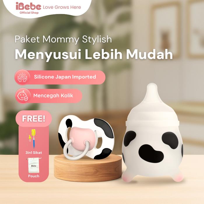 IBEBE SILIKON BOTOL SUSU 150ML & 240ML + DOT BAYI SAPI HIDUNG ANTI GIGI TONGGOS BPA FREE FOOD GRADE 0 BULAN+ SEDOTAN PINK LUCU NYAMAN SEDOTAN - BLACKK240+EMPENGL HITAM
