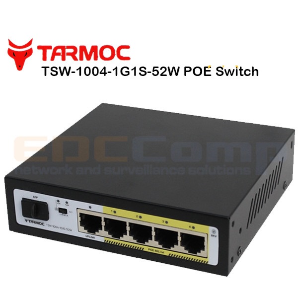 Tarmoc TSW-1004-1G-1S-52W 4 Port Gigabit POE 802.3af/at Switch 52 watt