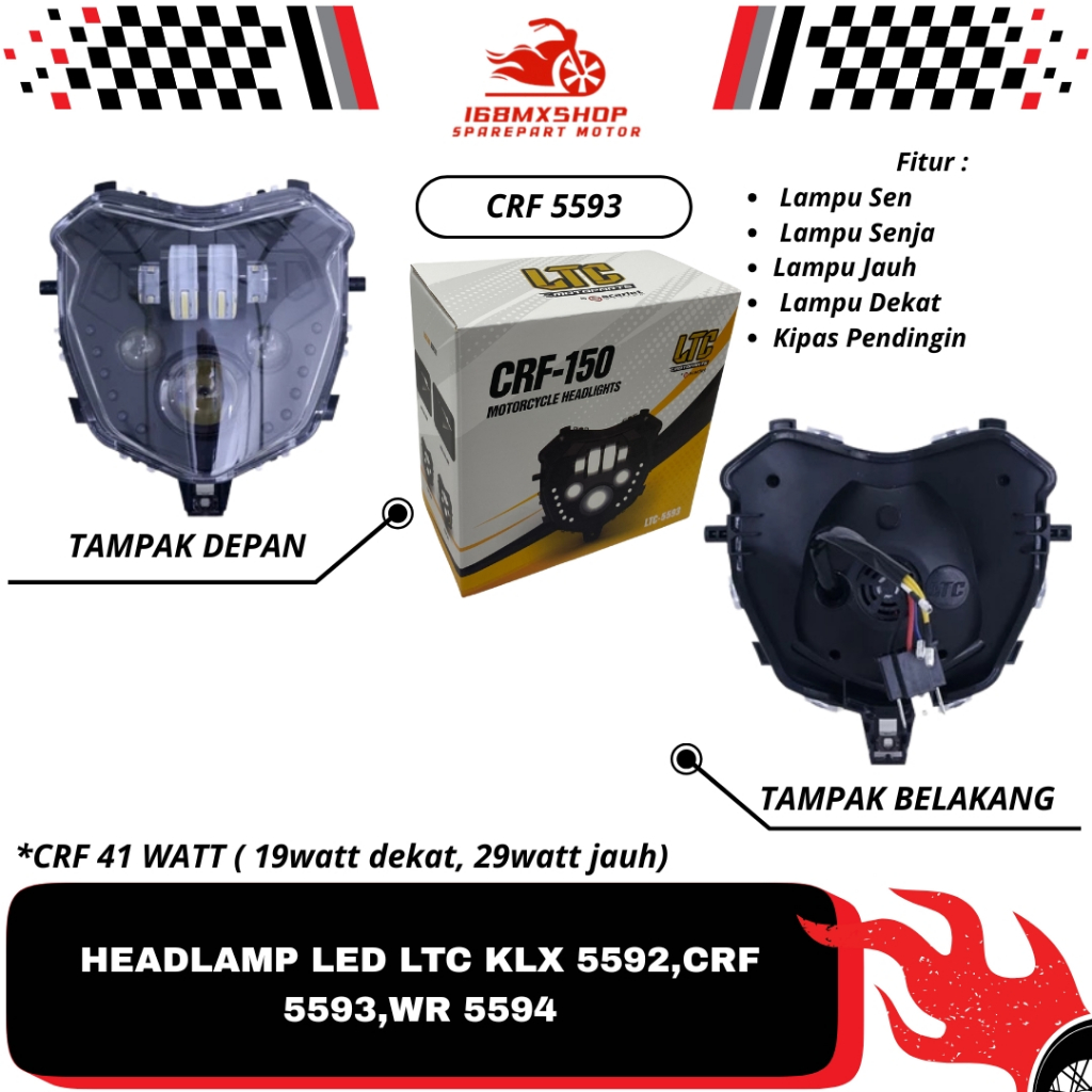 Reflektor LED Lampu Depan Sorot Headlamp LTC Motor KLX CRF WR