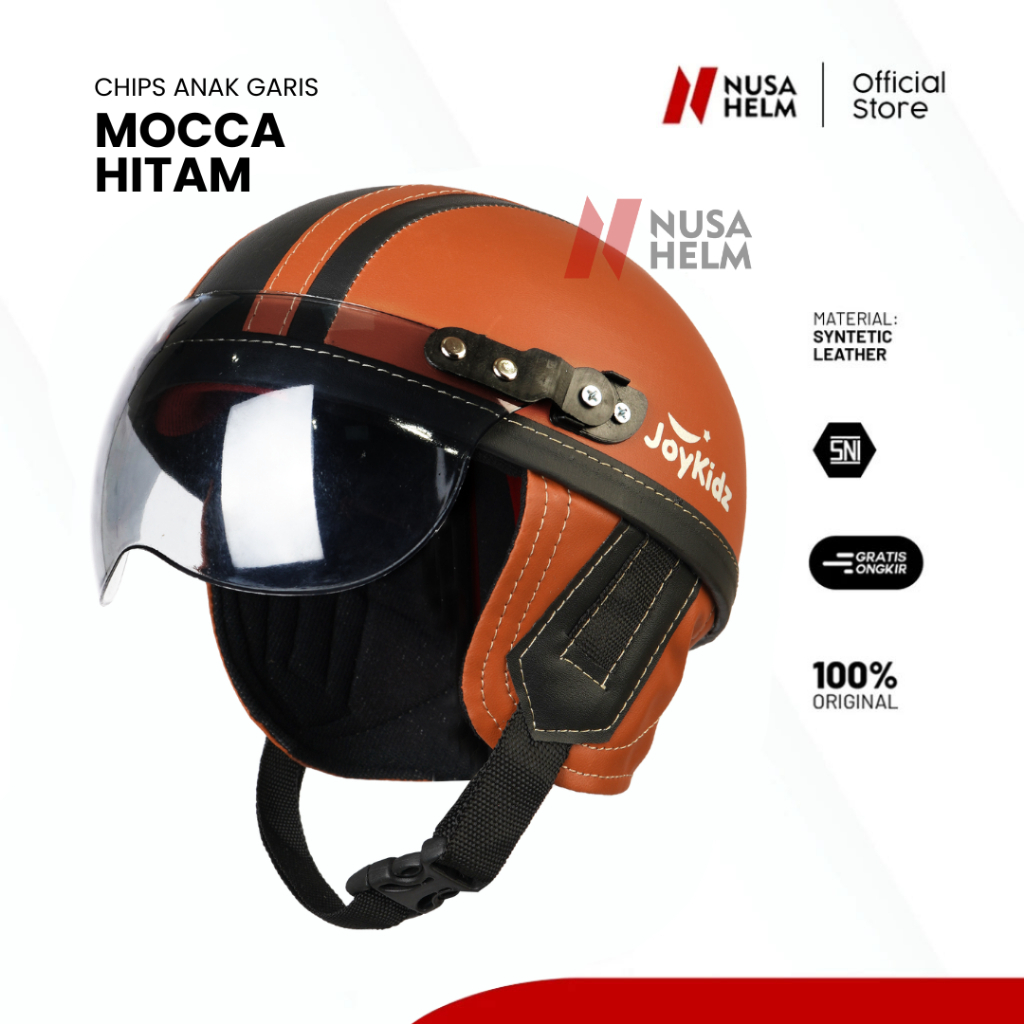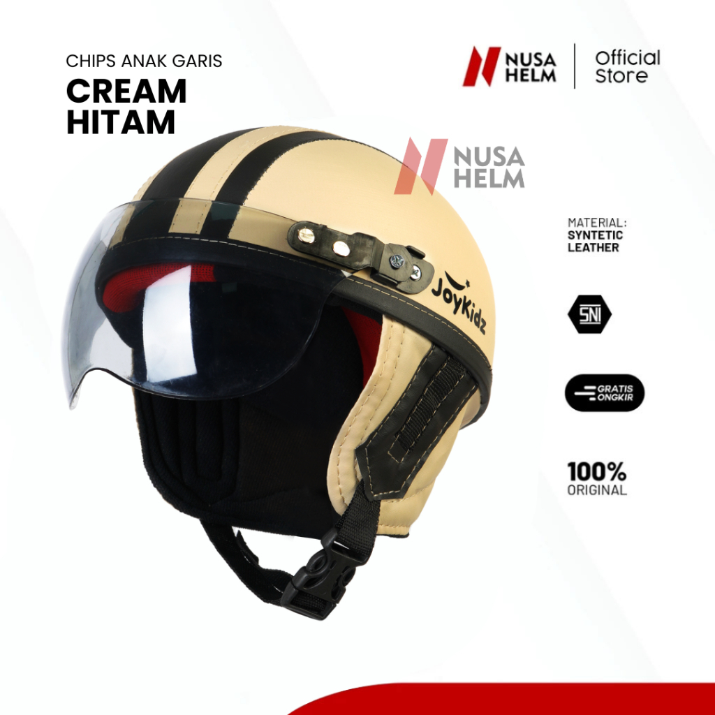 [Mall] Helm Anak Untuk Usia 1-5 Tahun Polos Garis - Cream Coklat