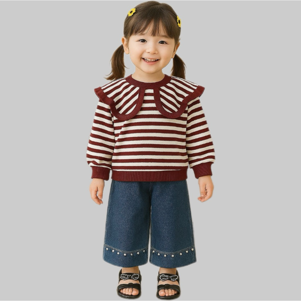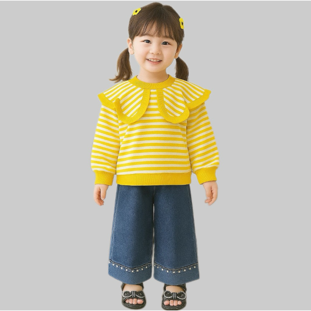 setelan anak setelan anak perempuan baju salur dan celana denim panjang anak 1-5 tahun ardan baju anak