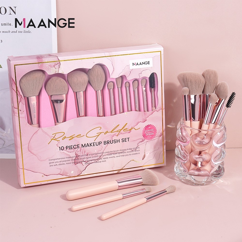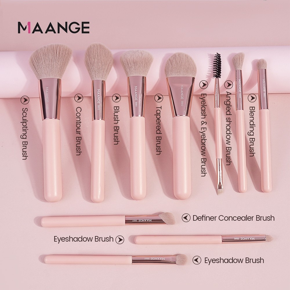 [Beli 1 Gratis]MAANGE Pinkiedition 10 pcs Makeup Brushes Set Kuas Rias Kualitas Tinggi Femininenergy Makeup Brushes Set
