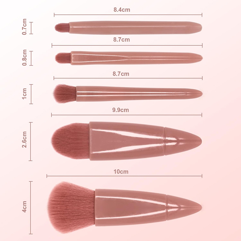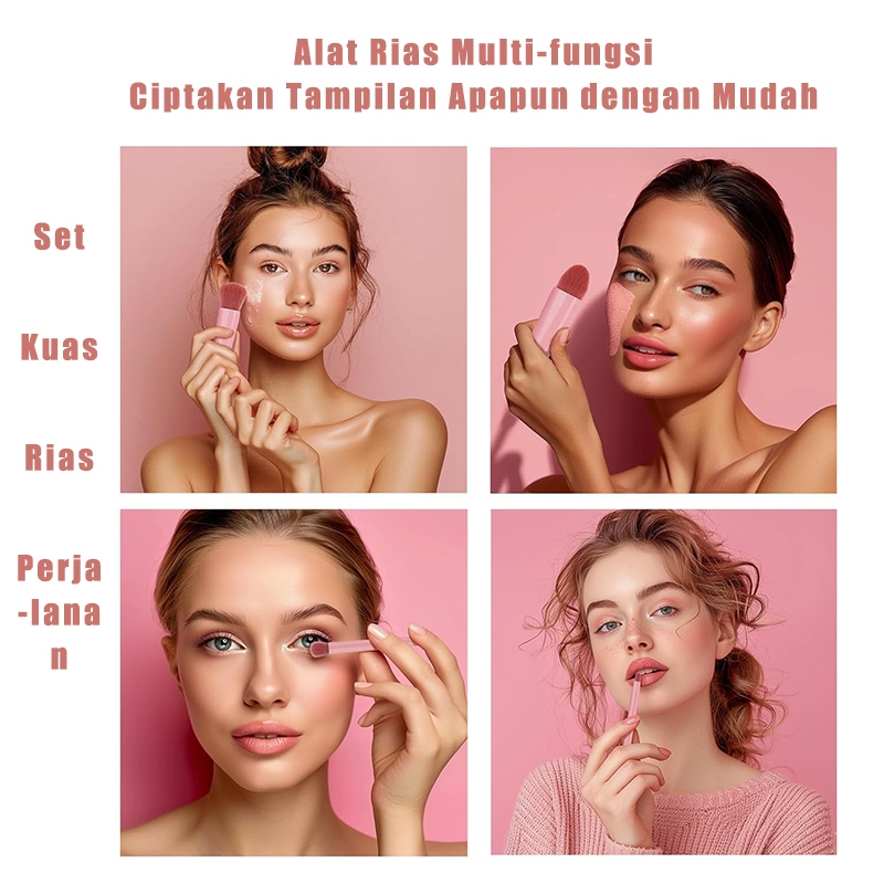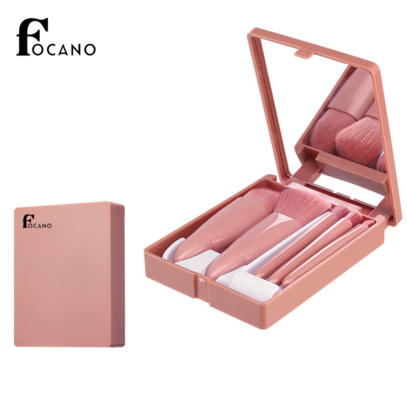 FOCANO Kuas Make Up isi 5 pcs + CERMIN Kotak/Makeup Brush 5in1 Set With Box Make Up Brush Set Kuas Make Up Portable Plus