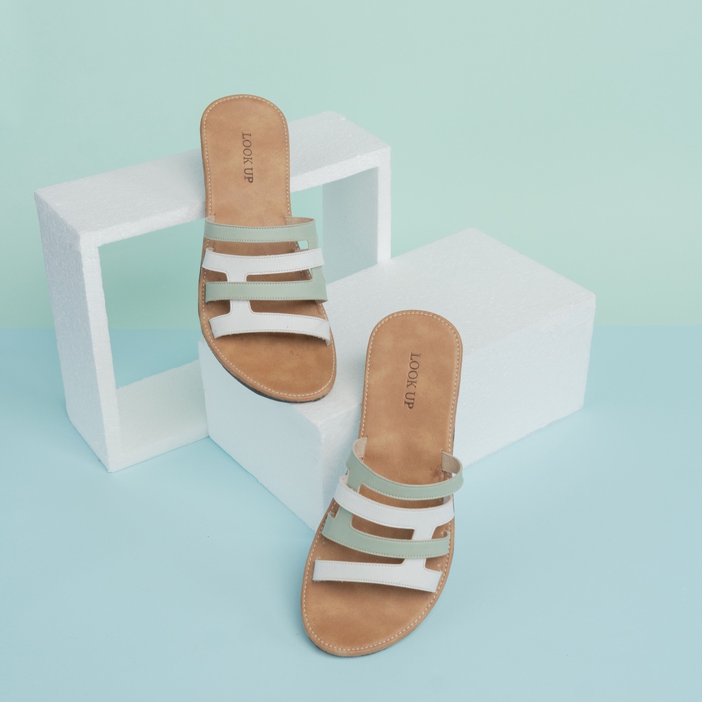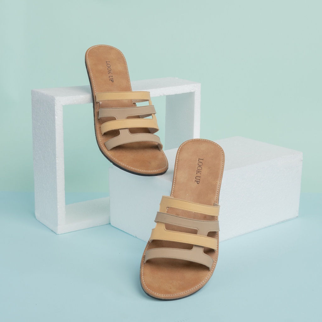 Look Up YUNIAR Sandal Wanita Slop Kokop Slide Sandal Flat Teplek Motif Kombinasi Flat Color Series