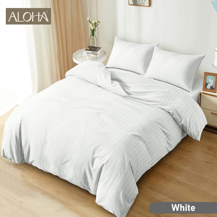 PROMO BED COVER ALOHA 180X200 POLOS EMBOSS TINGGI 20 CM BEDCOVER SET ALOHA WHITE 180X200 KING