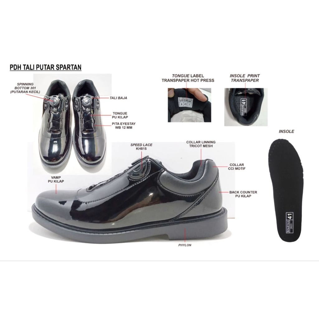 Sepatu PDH Putar Spartan Kulit Kilap Elegan