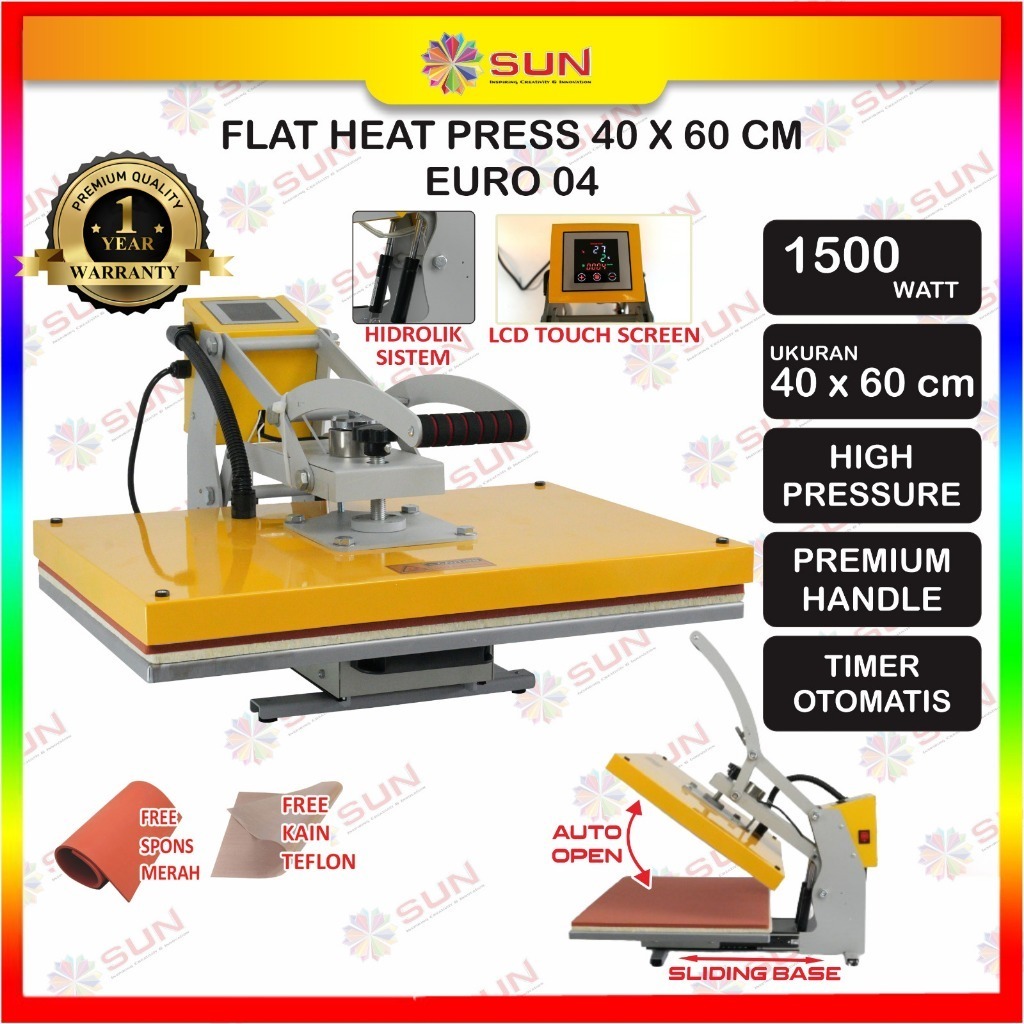 Mesin Press Sablon Kaos OTOMATIS Auto Open Sliding 38x38 / EURO-04 Kaos, Bag, Puzzle, Plat Aluminium, Bantal DTG, DTF,