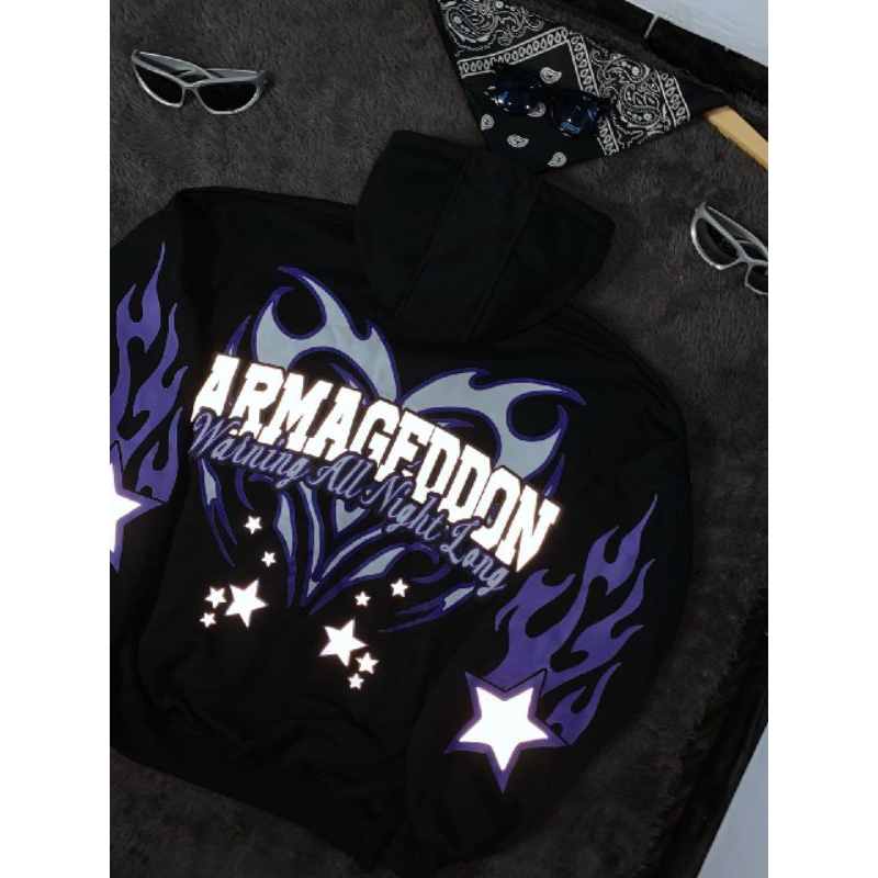 Hoodie Boxy Oversized Reflektif Desain Armageddon By Narcissism