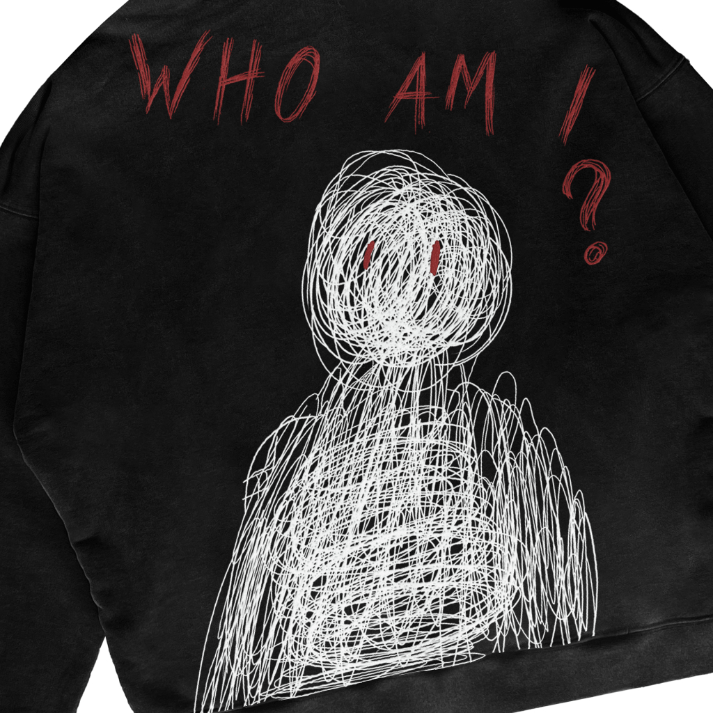 DREAMMUSE Hoodie Boxy 330 Gsm - Who Am I | Oversized Hoodie Black