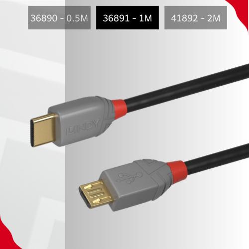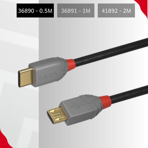 KABEL DATA LINDY USB 2.0 TYPE C TO MICRO B USB DAC CABLE - 36892 - 2M