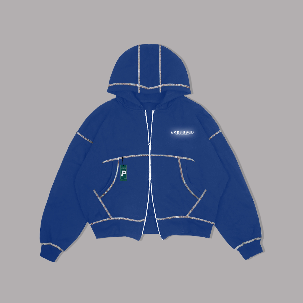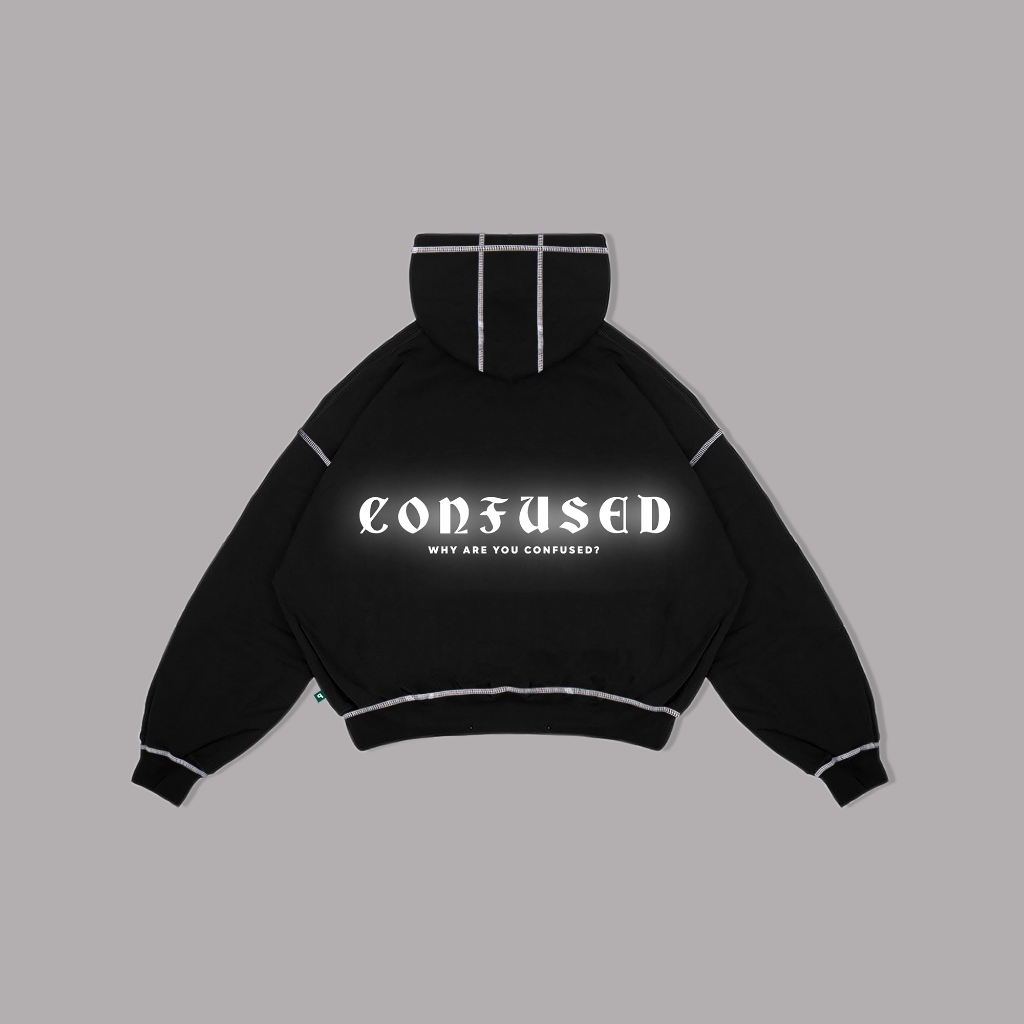 Pholymerch.- Zipper Hodi Boxy Oversize Unisex Confused Menyala Warna HItam Hoodie Boxy Fleece Tebal