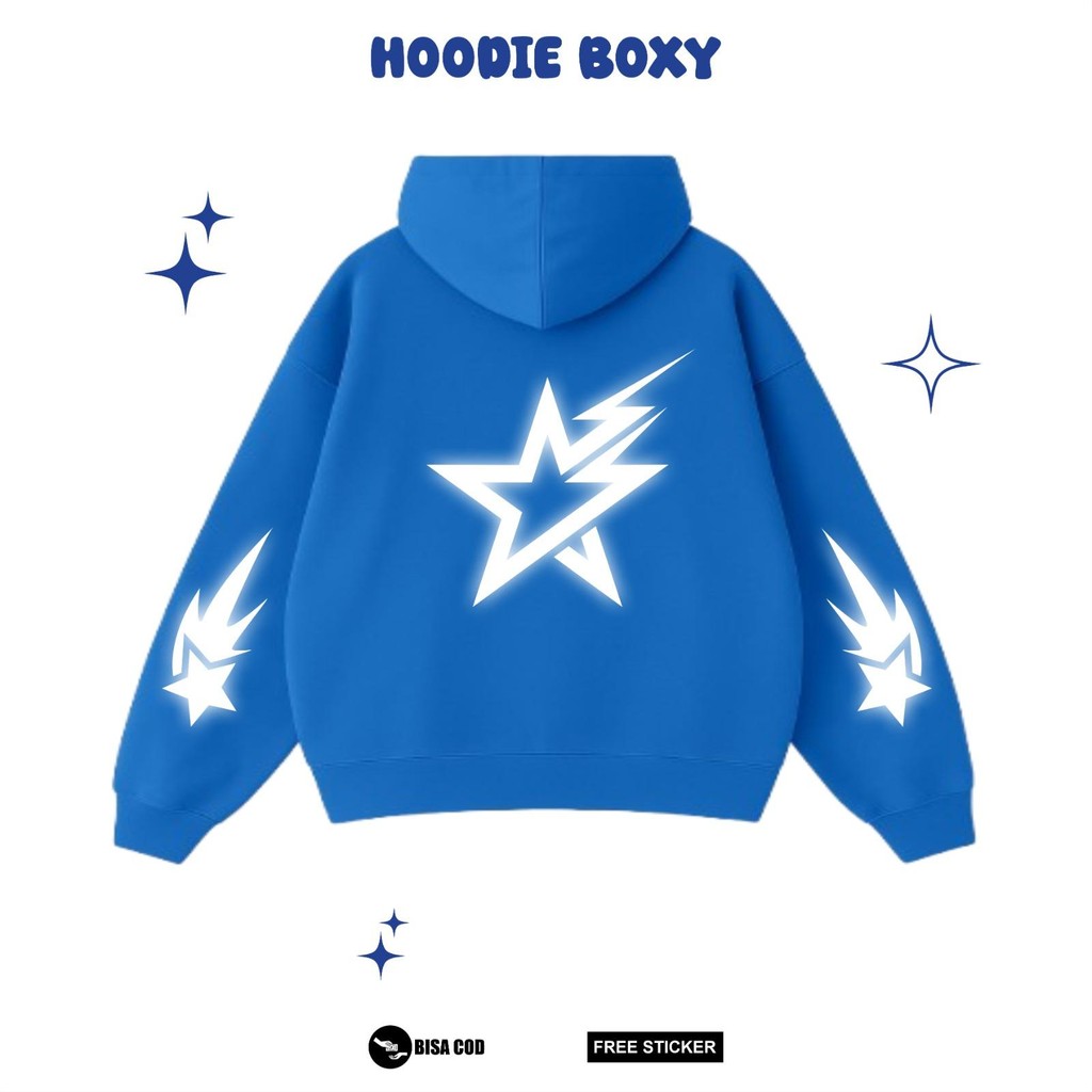 Hoodie Boxy Oversized Sablon Reflektif Desain Bintang By Narcissism