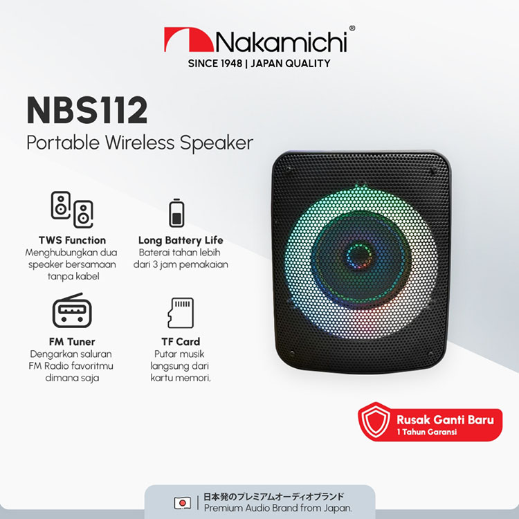 Nakamichi NBS112 Portable Wireless Speaker Audio Bluetooth RGB Super bass Garansi Resmi 1 Tahun
