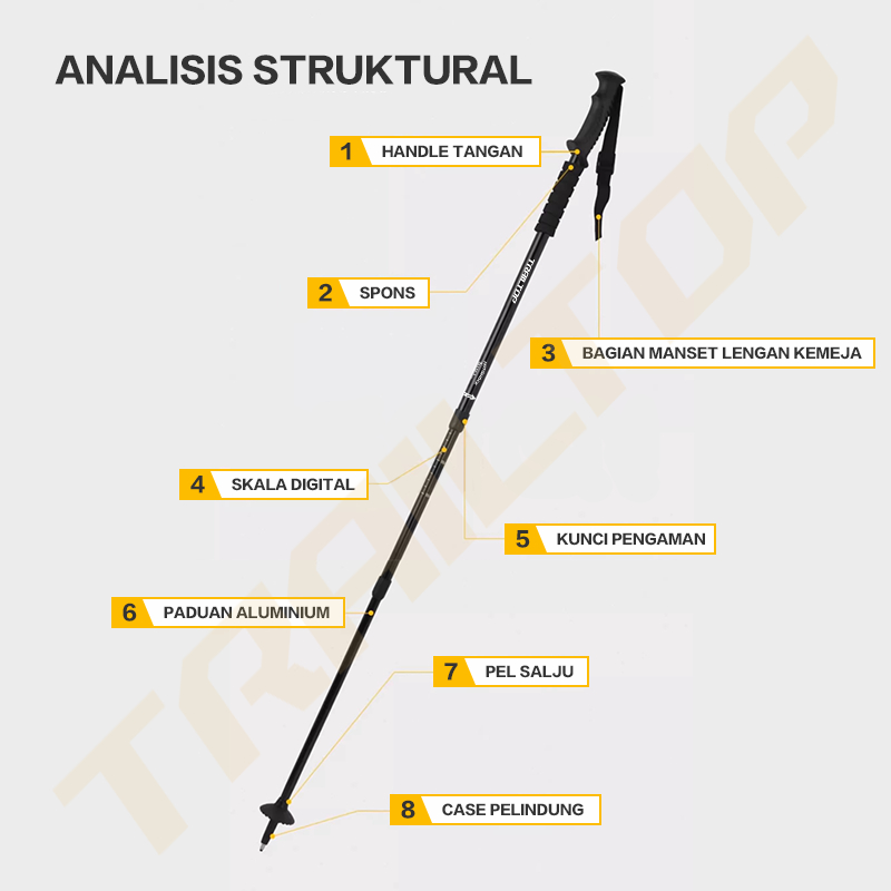 Tongkat Gunung Tracking Pole Lipat Hiking Dapat Diatur Sesuka Hati