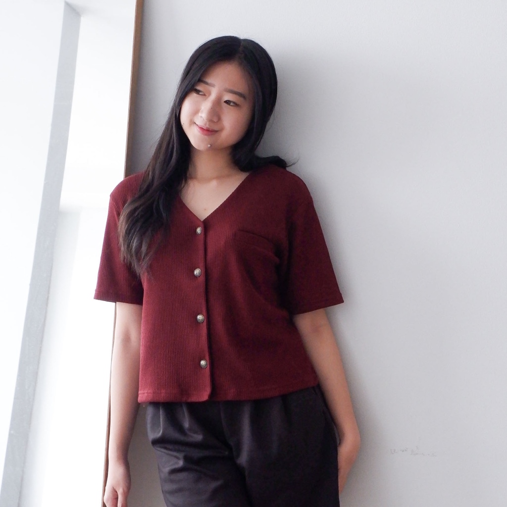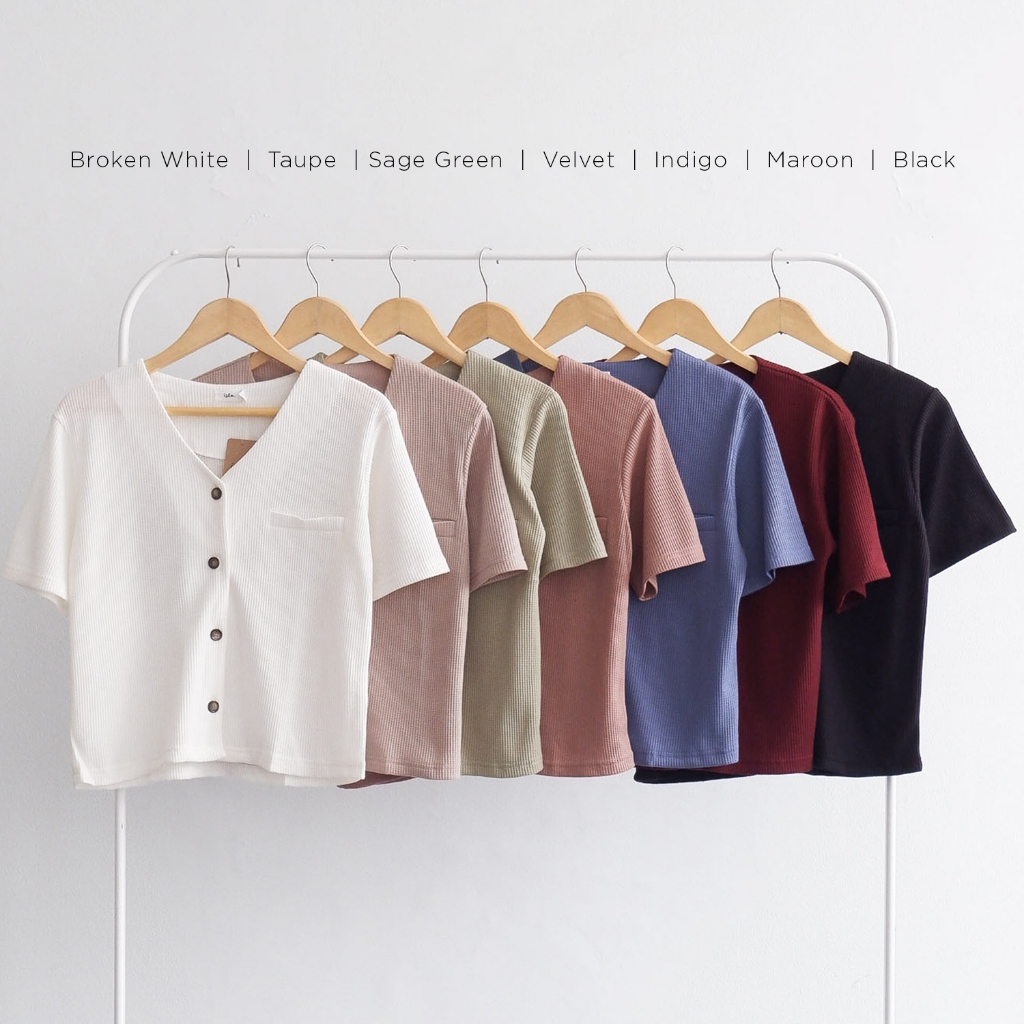 Isla Zoe Waffle Top Short Sleeve with Buttons - Atasan Wanita Lengan Pendek - Kemeja Wanita - Baju Wanita Kekinian - Kemeja Kerja - Baju 17 Agustus