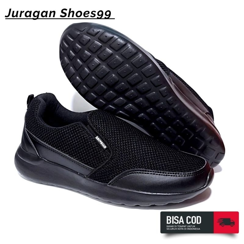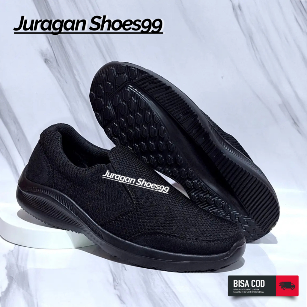 Sepatu Slip On Pria Wanita Sepatu Sekolah Hitam Polos Full Black Sepatu Kerja