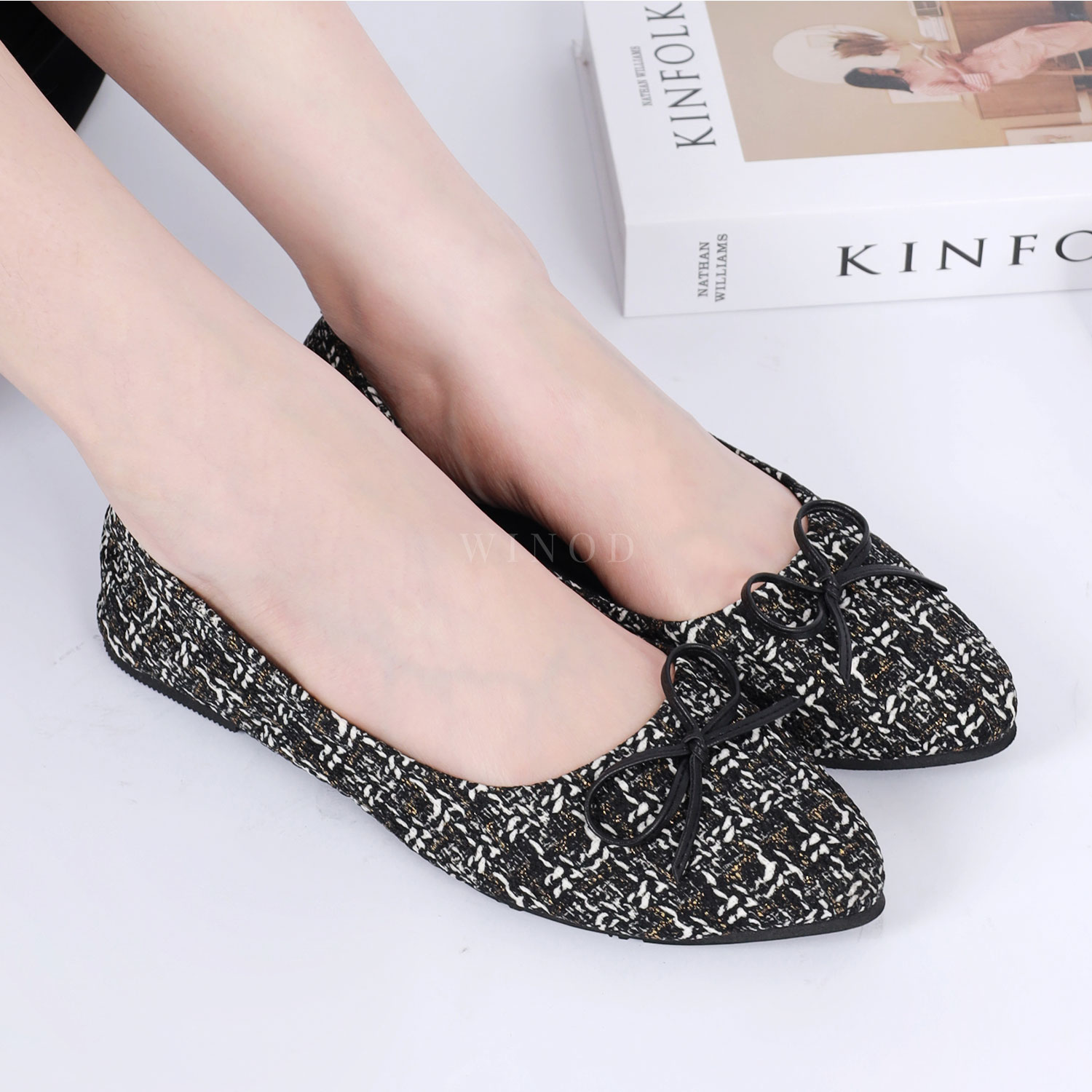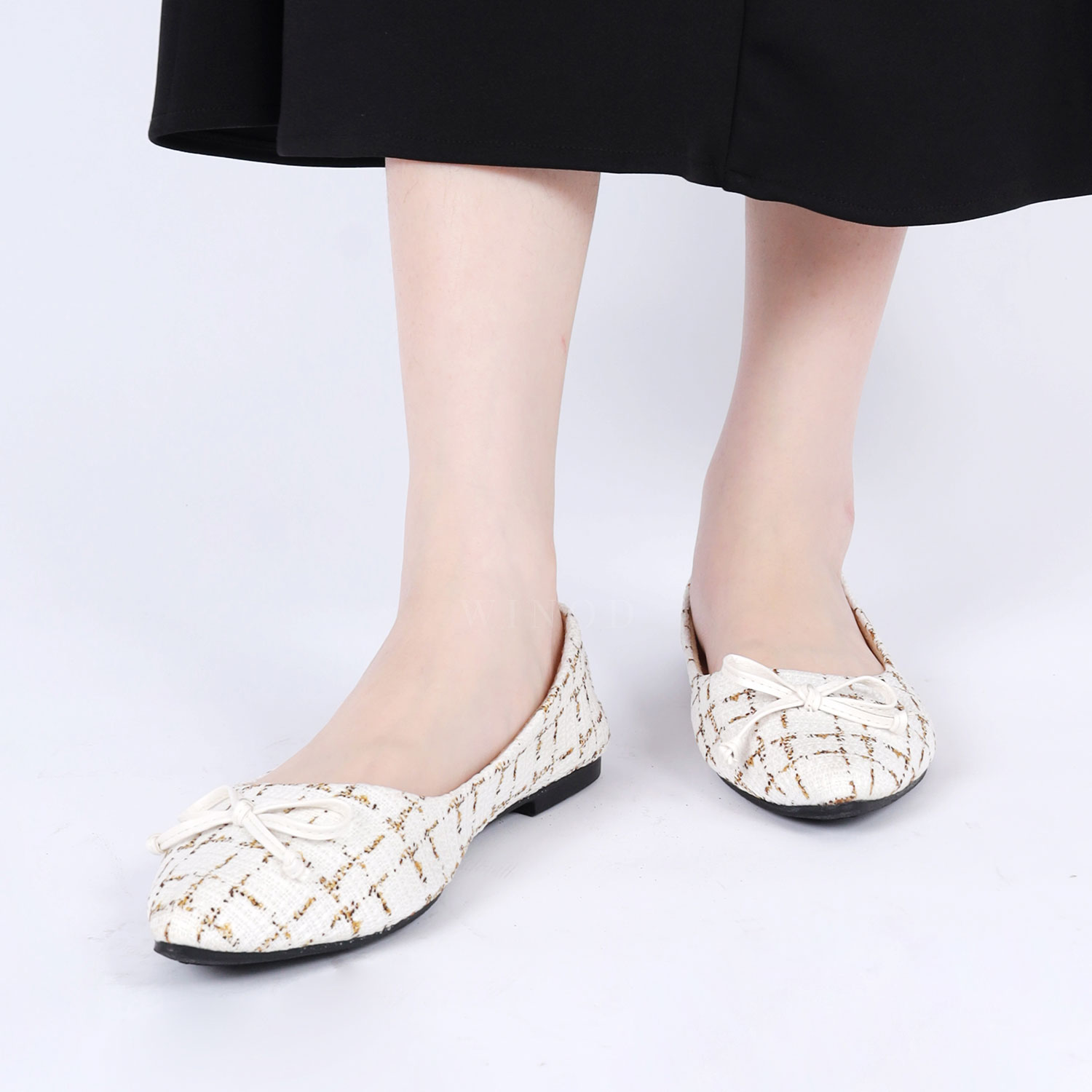 WINOD Maliqa Flatshoes Kantor Wanita Model Tweed Flats Kekinian Daily